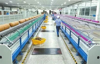 在专精特新中小企业新疆天山毛纺织股份有限公司生产车间,工人在生产线上忙碌。