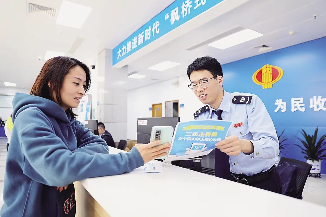 图为深圳市宝安区税务局办税服务厅税务干部在辅导纳税人进行年度汇算清缴预约操作。(融亦 李海英/摄)