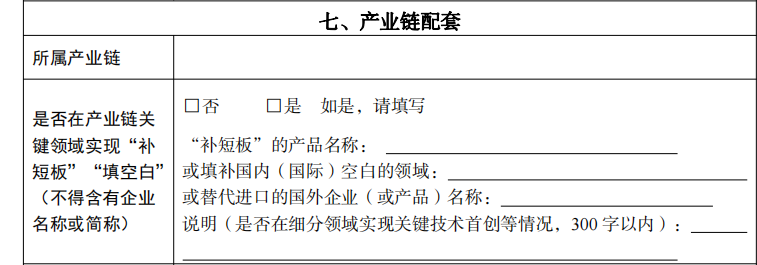 5.产业链:是否在产业链关键领域实现“补短板”“填空白”,强调“不得含有企业名称或简称”。