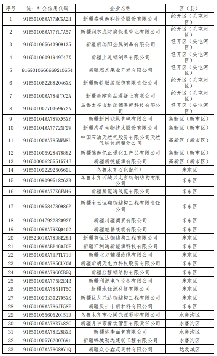 根据《乌鲁木齐市工业企业“小升规”三年培育行动工作方案(2023—2025年)》(乌政办〔2023〕77号)和《乌鲁木齐市工业企业“小升规”专项资金管理办法》(乌工信运行〔2024〕10号)规定,经企业自主申报,区(县)工信部门、统计部门初审,市工信局、市统计局复审,2023年度工业企业“小升规”专项资金申报拟通过审核企业共41家(附件)。