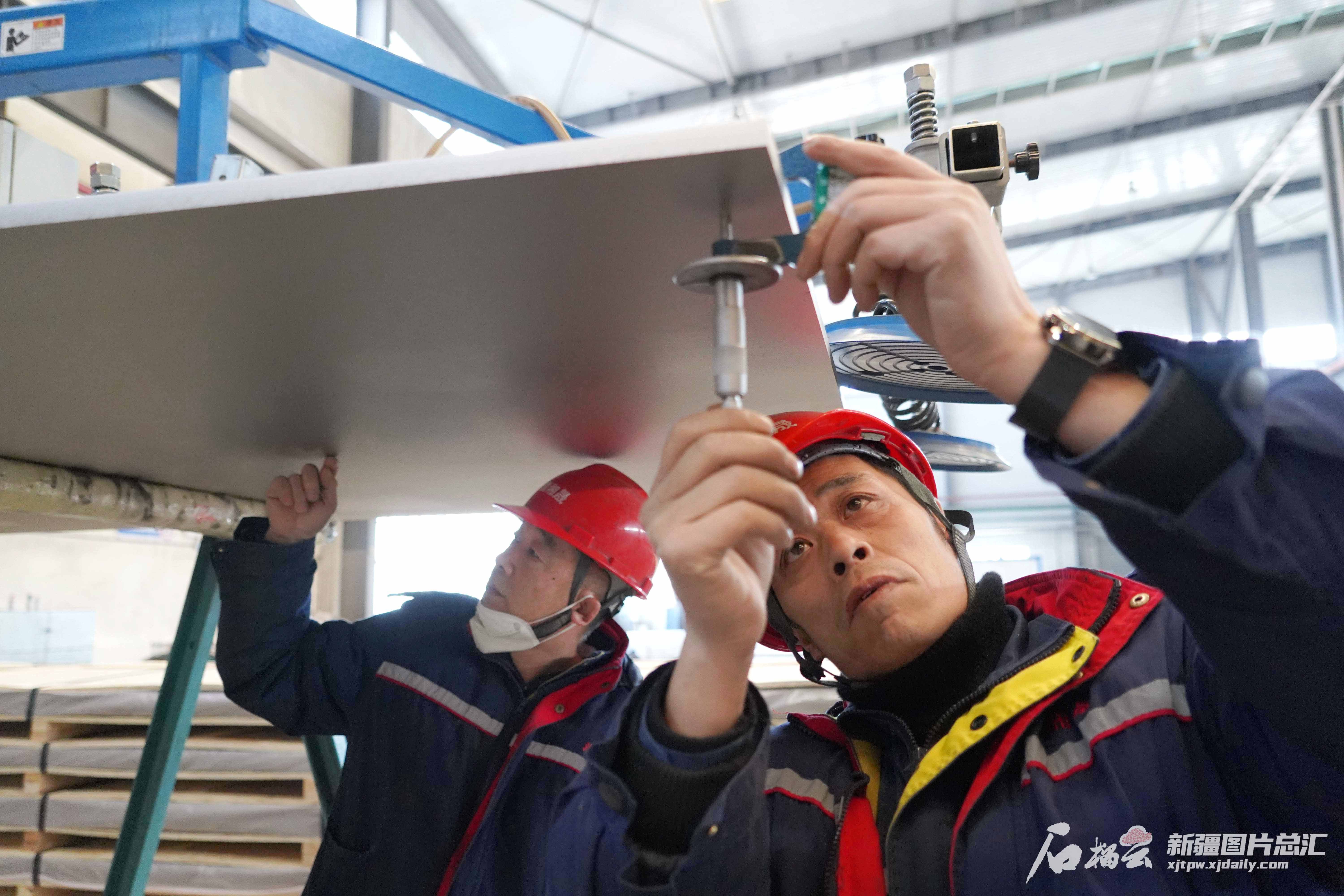 新疆湘润新材料科技有限公司专业人员检测板材质量。(摄影:郭子毅)