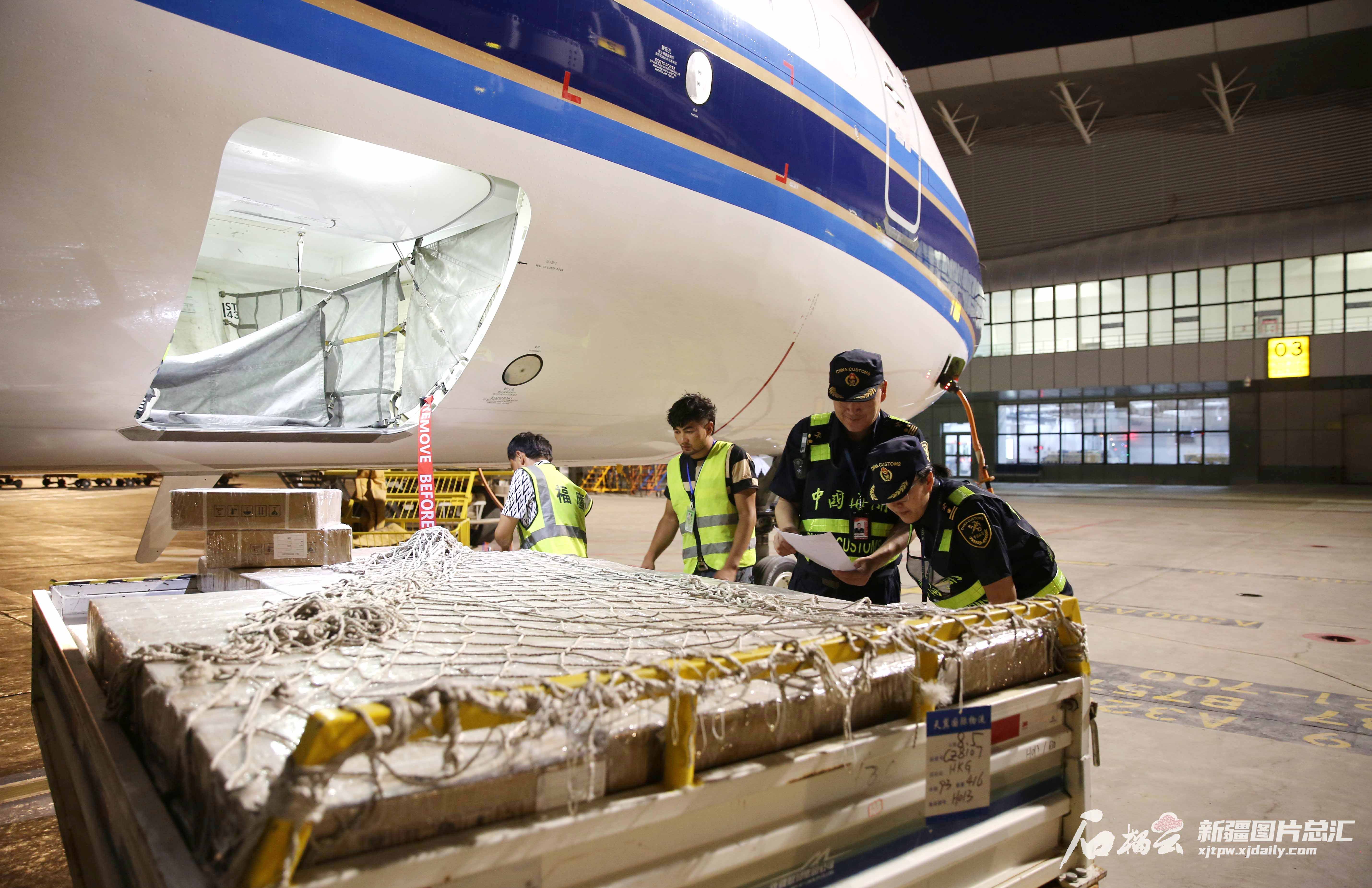 8月5日,喀什海关关员对喀什航空口岸出口货物进行监管查验。(摄影:林媛)